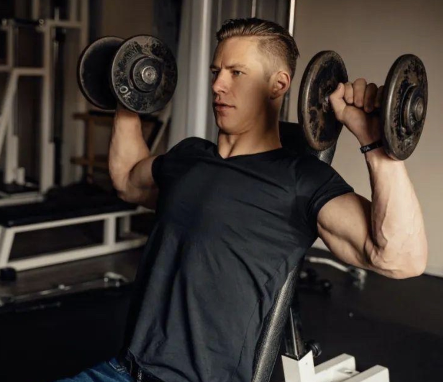 덤벨이나 바벨을 들고 수직방향으로 리프팅을 수행함으로써 특히 남자에게 가장 중요하다고 말하는 어깨 근력강화 및 사이즈 성장에